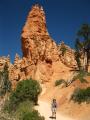 Dennoch schafften wir es irgendwie, gegen 11 Uhr am Bryce Canyon einzutreffen, passierten den Eingang mit unserem Jahrespass und fuhren zum Parkplatz des Navajo Loop Trails. Von hier hatten wir erst einmal einen fantastischen Überblick über die Felsformationen, die in den letzten Millionen Jahren hier entstanden sind. Anschließend ging es den Trail entlang hinunter in die Schlucht, bis wir unzählige Serpentinen später unten im Wald angekommen waren. Ein amerikanisches Pärchen, dass hier auf der Parkbank saß, erzählte uns, dass der Aufstieg auf der anderen Seiten noch schlimmer sei - aber was blieb uns anderes übrig? Also ging es nach einem kurzen Spaziergang im Wald inklusive Kehrtwende auf der anderen Seite des Canyons wieder nach oben, und wir waren froh, endlich wieder am Parkplatz anzukommen.